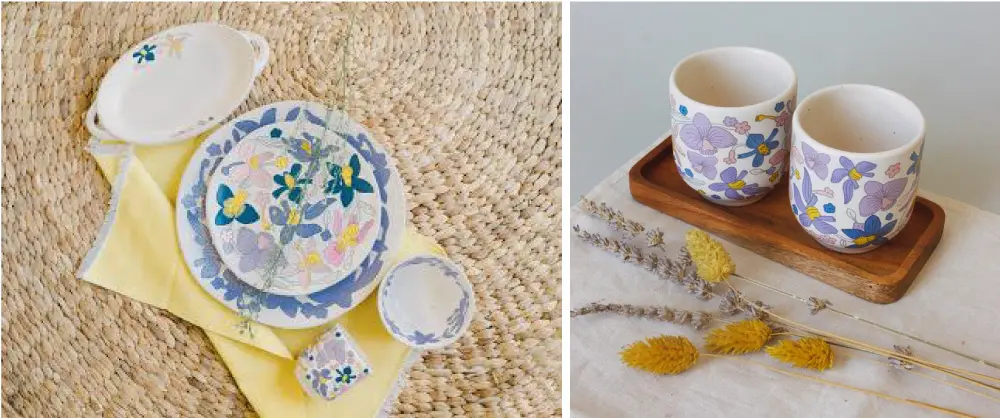 To bring this vision to life, we collaborated with Ayang Cempaka, a talented Indonesian illustrator based in Dubai. Ayang’s unique style brought a fresh, playful twist to the elegance of peonies and hydrangeas, resulting in a collection that is both sweet and uplifting. Whether displayed as a centerpiece or used in your daily meals, this collection is a reminder to appreciate the small things that make life just a little bit brighter—and always a little more beautiful.